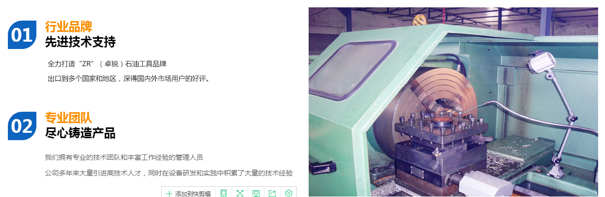 德州卓銳石油機(jī)械有限公司成立于2008年10月,專業(yè)生產(chǎn)螺桿鉆具拆裝架、無磁懸掛短節(jié)、螺桿鉆具配件、螺桿清膠機(jī)、PDC平面軸承、可調(diào)鉆具配件、360度全旋轉(zhuǎn)拆裝架、螺桿鉆具整機(jī)試驗(yàn)臺(tái)、螺桿鉆具馬達(dá)試驗(yàn)臺(tái)、渦輪鉆具配件、等壁厚螺桿定子加工機(jī)床、等壁厚螺桿鉆具等石油鉆井工具,打撈工具,固井工具及其配件。公司確立并始終堅(jiān)持不懈地發(fā)揚(yáng)“誠信,務(wù)實(shí),高效,創(chuàng)新”的企業(yè)精神全力打造“ZR”(卓銳)石油工具品牌。業(yè)務(wù)實(shí)現(xiàn)了快速發(fā)展,并得到業(yè)內(nèi)人士的廣泛認(rèn)同,成為石油裝備制造業(yè)一顆璀璨的新星。